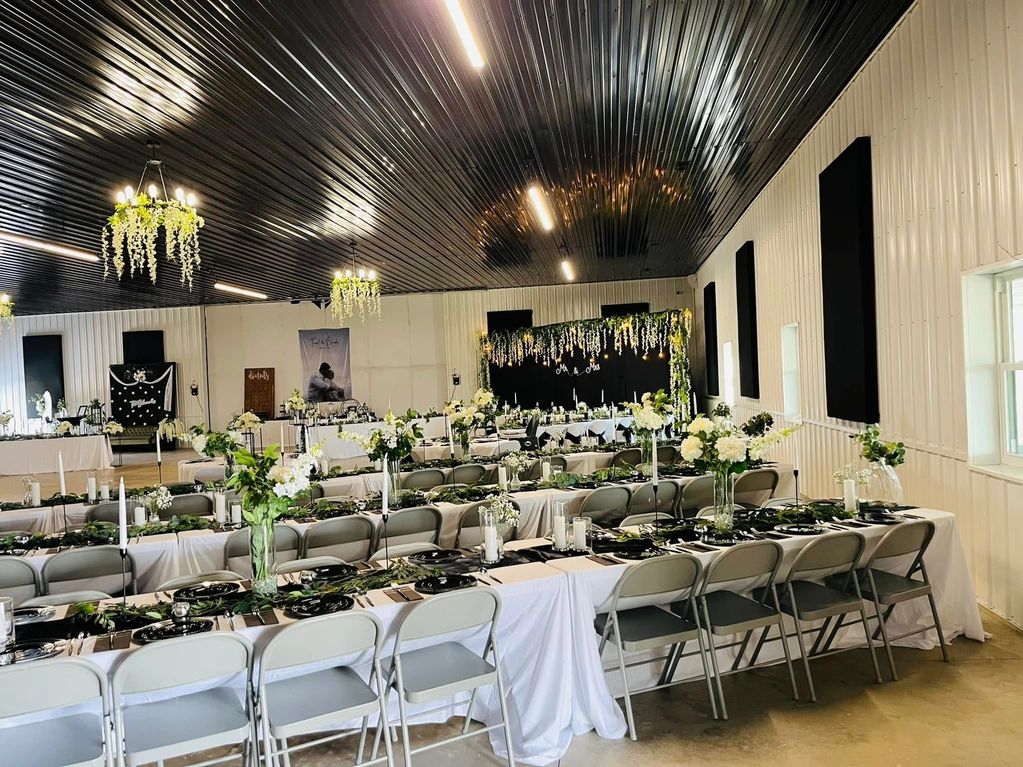 The front barn space is just under 6,000 square feet. We have tables and chairs for up to 250 and plan to increase this number to 350 by 2026. The Barn is fully heated and cooled so it is ready for all seasons of the year.